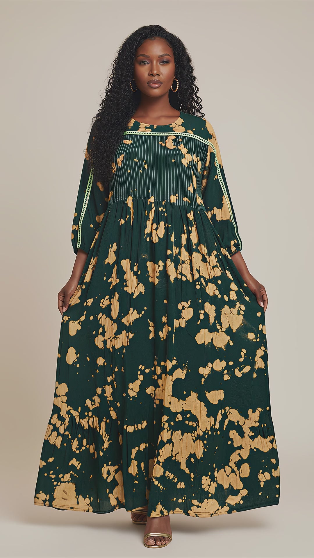 Green Printed Cotton Kaftan - Stylish & Comfortable DN-1225